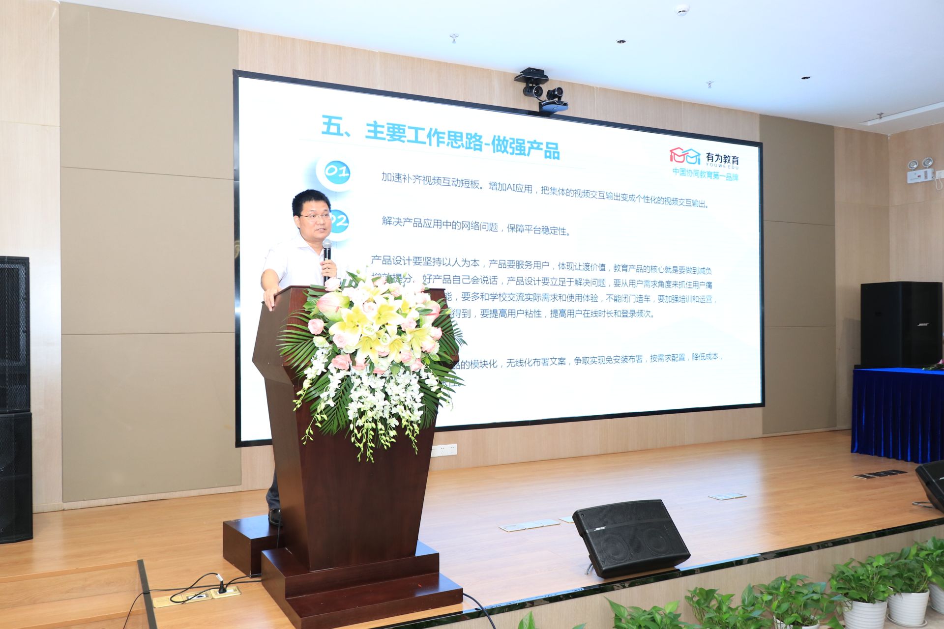 30日下午,公司董事长余文胜先生发表重要讲话。首先余总肯定了公司上半年各项工作取得的成就,始终看好公司发展的未来,行业的利好。他指出,一个企业想要持续发展关键是看有没有造血能力,列举了多个例子,并语重心长的寄语大家,希望大家能够共同努力,共同奋斗,一起创造有为教育的宏伟未来。